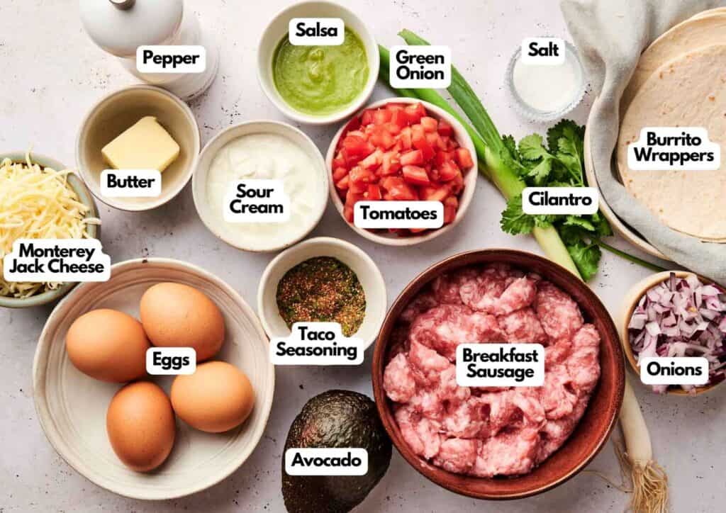 Air Fryer Breakfast Burritos Ingredients. Photo Credit: Hungry Cooks Kitchen.