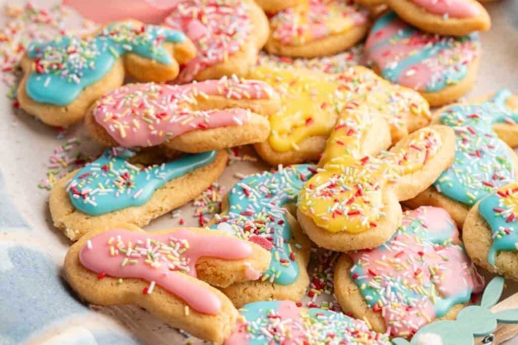 I love making these every Easter for cookie platters, classroom treats, and neighbor gifts because they are adorable, easy to package in little bags or boxes, and always get the biggest reaction from kids and adults alike. The dough can be made ahead, which makes holiday baking so much easier. Store decorated cookies in an airtight container at room temperature for up to 3 days.