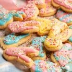 Once the icing has fully set, store the cookies in an airtight container at room temperature for up to 3 days. Place parchment paper between layers to protect the icing and sprinkles from smudging or sticking together.