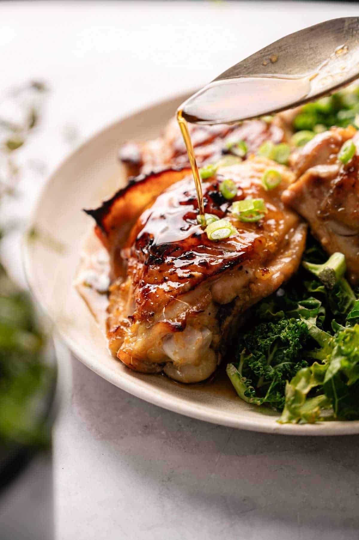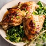- Use bone-in, skin-on thighs: Boneless or skinless thighs won’t caramelize the same way. The skin is what gets crispy and holds that glossy glaze, so don’t swap it out.